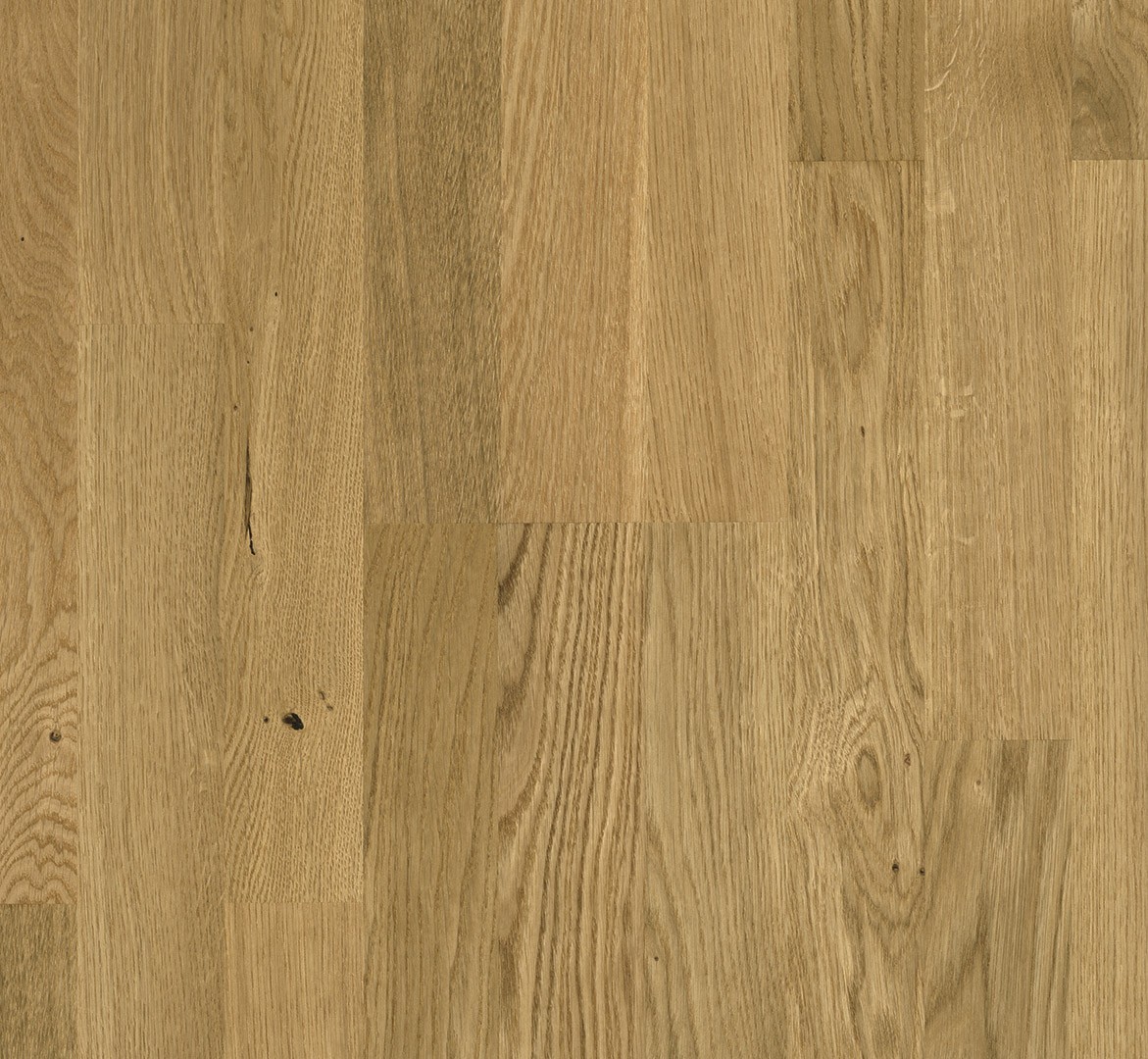 Parador engineered wood flooring Knotty Oak 3-strip from the Classic 3060 product line meets the highest demands in terms of design and quality and can satisfy a wide range of design requirements. The high-quality engineered wood flooring has a matt lacquer finish and creates a very special and natural atmosphere for any living room ambience. The planks of uncompromising quality are available as a 3-strip in the format 2200 x 185 x 13 mm. The Living assortment is characterised by vibrant looks and stresses the earthy character of the wood. The design of the planks has no bevels, so that the planks join together without any noticeable gaps, creating a uniform and harmonious installation pattern. Durable and stylish in installation, Parador Classic 3060 engineered wood flooring is easy to install thanks to an Automatic-Click system with long and end edge locking. The all-round impregnation of the lamellas and top layers ensures reliable swelling protection. The top layer is about 3.6 mm high. This engineered wood flooring is suitable for installation on underfloor heating systems. The manufacturer’s guarantee is 25 years. For the production of Parador engineered wood flooring from the Classic 3060 product line, wood from sustainably managed sources is predominantly used. Parador engineered wood flooring has received several certifications.