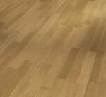 Parador engineered wood flooring Oak 3-strip from the Classic 3060 product line meets the highest demands in terms of design and quality and can satisfy a wide range of design requirements. The high-quality engineered wood flooring has a matt lacquer finish and creates a very special and natural atmosphere for any living room ambience. The planks of uncompromising quality are available as a 3-strip in the format 2200 x 185 x 13 mm. The Select assortment is characterised by its harmonious texture, fine colour nuances and an extraordinary refined appearance. The design of the planks has no bevels, so that the planks join together without any noticeable gaps, creating a uniform and harmonious installation pattern. Durable and stylish in installation, Parador Classic 3060 engineered wood flooring is easy to install thanks to an Automatic-Click system with long and end edge locking. The all-round impregnation of the lamellas and top layers ensures reliable swelling protection. The top layer is about 3.6 mm high. This engineered wood flooring is suitable for installation on underfloor heating systems. The manufacturer’s guarantee is 25 years. For the production of Parador engineered wood flooring from the Classic 3060 product line, wood from sustainably managed sources is predominantly used. Parador engineered wood flooring has received several certifications.