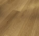 Parador engineered wood flooring Oak wide plank from the Classic 3060 product line meets the highest demands in terms of design and quality and can satisfy a wide range of design requirements. The high-quality engineered wood flooring has a matt lacquer finish and creates a very special and natural atmosphere for any living room ambience. The planks of uncompromising quality are available as a wide plank in the format 2200 x 185 x 13 mm. The Natur assortment is the best basis for a flooring design with a natural but balanced overall effect. The planks have an all-round mini bevel, which discreetly interrupts the appearance of the installed planks and underlines the typical engineered wood flooring look. Durable and stylish in installation, Parador Classic 3060 engineered wood flooring is easy to install thanks to an Automatic-Click system with long and end edge locking. The all-round impregnation of the lamellas and top layers ensures reliable swelling protection. The top layer is about 3.6 mm high. This engineered wood flooring is suitable for installation on underfloor heating systems. The manufacturer’s guarantee is 25 years. For the production of Parador engineered wood flooring from the Classic 3060 product line, wood from sustainably managed sources is predominantly used. Parador engineered wood flooring has received several certifications.