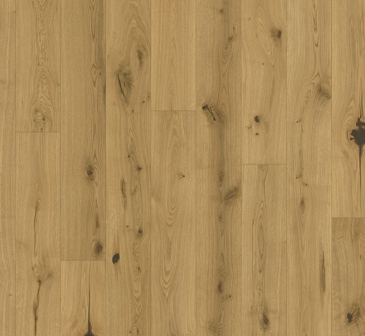 Parador engineered wood flooring Oak Chianti natural wide plank from the Classic 3025 product line offers a wide range of design options for people with high standards of design and quality. The flooring in the classic design with the natural oil plus surface finish is a stylish basis in the design of living spaces. The Character assortment has an original, rustic wood appearance with larger knots and striking differences in colour and texture. A 4-sided mini bevel discreetly interrupts the appearance of the installed planks and thus underlines the original character of engineered wood flooring. Parador engineered wood flooring Oak Chianti natural from the Classic 3025 product line is available as a wide plank in the format 2200 x 185 x 13 mm. Parador engineered wood flooring Classic 3025 is uncompromising in quality and features all-round lamellas and top layer impregnation. The top layer is 2.5 mm high. This engineered wood flooring is suitable for installation on underfloor heating and underfloor cooling. It is easy and safe to install thanks to an automatic click system with long and end edge locking. This flooring comes with a manufacturer’s guarantee (according to Parador guarantee terms) of 25 years. For the production of Parador engineered wood flooring from the Classic 3025 product line, wood from sustainably managed sources is predominantly used. Parador engineered wood flooring has received several certifications.