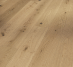 Parador engineered wood flooring Oak Lugana light-whitewashed wide plank from the Trendtime 4 product line enables trendy interior design at the highest level. The sophisticated design as well as the white matt lacquer surface of the wide planks in the format 2010 x 160 x 13 mm make this engineered wood flooring a real all-rounder in the field of unique living space design. The Rustikal assortment, due to its knotty appearance, the pronounced play of colours and its distinct grain, appears particularly original. A 4-sided mini bevel discreetly interrupts the appearance of the installed planks and thus underlines the original character of engineered wood flooring. The planks can be installed very easily thanks to an Automatic-Click system with long and end edge locking. An all-round lamella and top layer impregnation provides reliable swelling protection. The height of the solid wood top layer is approx. 3.6 mm. The flooring remains dimensionally stable and gives a pleasant walking sensation that is warm underfoot. Parador engineered wood flooring Trendtime 4 is suitable for installation on underfloor heating systems. The manufacturer’s guarantee on this engineered wood flooring is 25 years. For the production of Parador engineered wood flooring from the Trendtime product line, wood from sustainably managed sources is predominantly used. Parador engineered wood flooring has received several certifications.