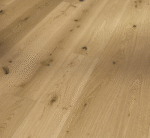 Parador engineered wood flooring Oak Lugana natural wide plank from the Trendtime 4 product line enables trendy interior design at the highest level. The sophisticated design as well as the natural oil plus surface of the wide planks in the format 2010 x 160 x 13 mm make this engineered wood flooring a real all-rounder in the field of unique living space design. The Rustikal assortment, due to its knotty appearance, the pronounced play of colours and its distinct grain, appears particularly original. A 4-sided mini bevel discreetly interrupts the appearance of the installed planks and thus underlines the original character of engineered wood flooring. The planks can be installed very easily thanks to an Automatic-Click system with long and end edge locking. An all-round lamella and top layer impregnation provides reliable swelling protection. The height of the solid wood top layer is approximately. 3.6 mm. The flooring remains dimensionally stable and gives a pleasant walking sensation that is warm underfoot. Parador engineered wood flooring Trendtime 4 is suitable for installation on underfloor heating systems. The manufacturer’s guarantee on this engineered wood flooring is 25 years. For the production of Parador engineered wood flooring from the Trendtime product line, wood from sustainably managed sources is predominantly used. Parador engineered wood flooring has received several certifications.