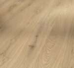 Parador engineered wood flooring Oak Pure wide plank from the Basic 11-5 product line is an attractive engineered wood flooring with a top layer of solid wood in matt lacquer, which enables price-conscious interior design with individual and high-quality engineered wood flooring. Suitable for everyday use and easy to maintain, this convincing natural product offers a wide range of design options. This Parador engineered wood flooring from the Basic 11-5 product line is available as a wide plank in the format 2200 x 185 x 11.5 mm. The planks have an all-round mini bevel, which discreetly interrupts the appearance of the installed planks and underlines the typical engineered wood flooring look. The Classic assortment boasts a vibrant range between a harmonious, natural and earthy look. Parador engineered wood flooring Basic 11-5 has an Automatic-Click system and is easy to install – also thanks to the low installation height of 11.5 mm. The top layer is about 2.5 mm high. The engineered wood flooring is even suitable for installation on underfloor heating systems. This flooring has reliable swelling protection due to an all-round lamella and top layer impregnation. A manufacturer’s guarantee period of ten years is granted.
