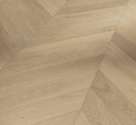 Parador parquet oak Chevron opens up a particularly creative design option for individual living spaces with high-quality living room flair. The engineered wood flooring picks up on the traditional French herringbone pattern, which is one of the absolute trends in floor design. Durable and stylish, the parquet flooring with solid wood top layer made of high-quality oak proves to be visually particularly noble. The planks in the format 610 x 90 x 15 mm are available as left and right planks and thus allow an authentic implementation of this unusual installation pattern. The natural assortment contributes to a harmonious, natural look. The surface finish lacquer-sealed matt additionally protects the floor. The 4-sided mini bevel underlines the naturalness of the floor and emphasizes the individual planks. The result is a harmonious laying pattern. For a durable connection stability, a full-surface gluing as well as installation by a professional is required. The circumferential tongue and groove joint facilitates installation in the adhesive bed and enables uncomplicated continuous installation. A circumferential lamella and cover layer impregnation ensures reliable swell protection. The height of the top layer is approx. 3.5 mm. This engineered wood flooring is suitable for installation on underfloor heating systems. The warranty period provided by Parador is 25 years. For the production of Parador chevron engineered wood flooring is mainly used wood from sustainably managed sources. Parador engineered wood is certified several times.
