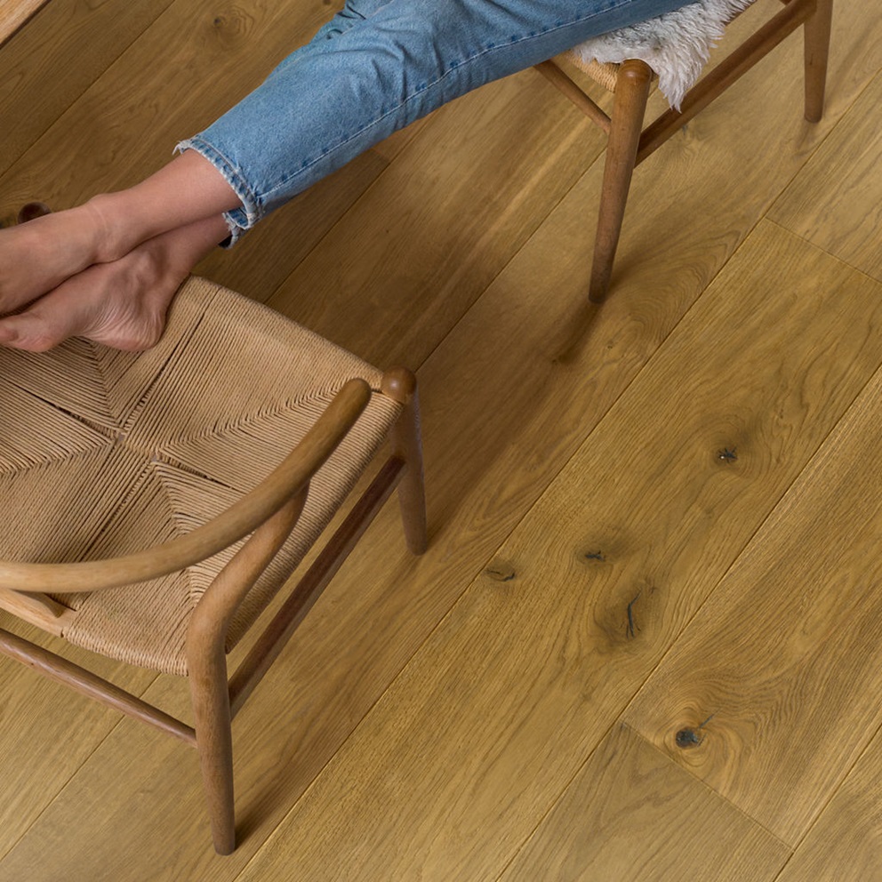 The moisture-repellent ‘Wood for Life’ technology can help to prevent mud, spilled foods and other dirt from getting stuck in the joints and texture of the wood. This helps to keep your floor looking as good as new. -